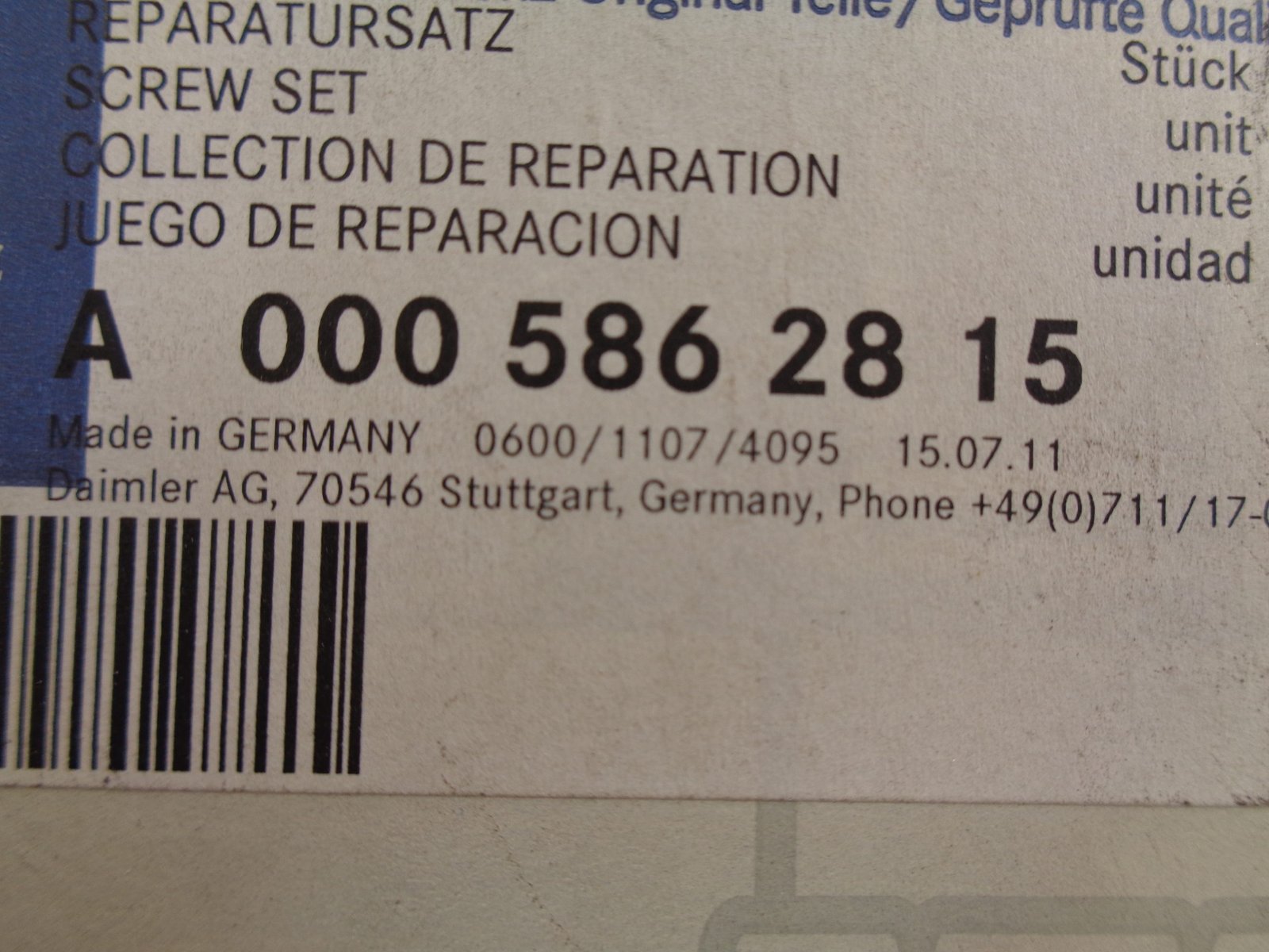 A0005862815 W114 REPARATIESET ONTSTEKKING NEW OLD STOCK ORIGINEEL MERCEDES-BENZ