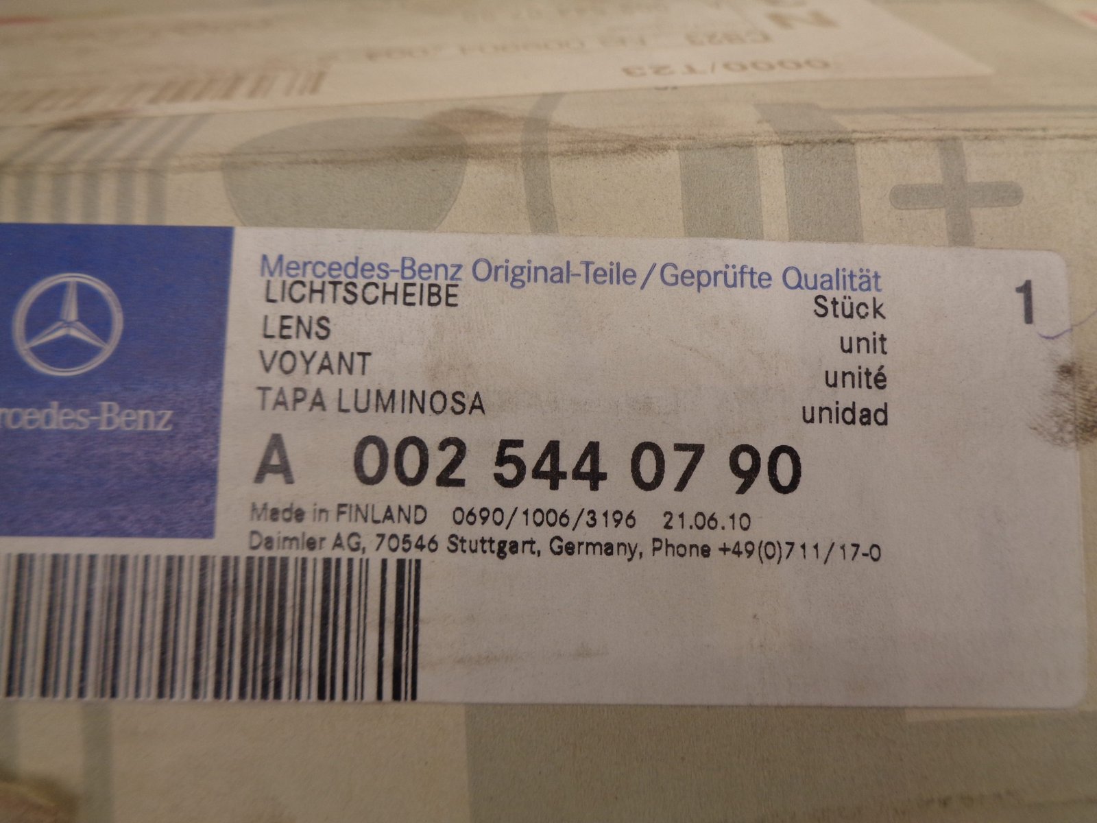 A0025440790 T2 ECOVAN ACHTERLICHTGLAS NEW OLD STOCK ORIGINEEL MERCEDES-BENZ