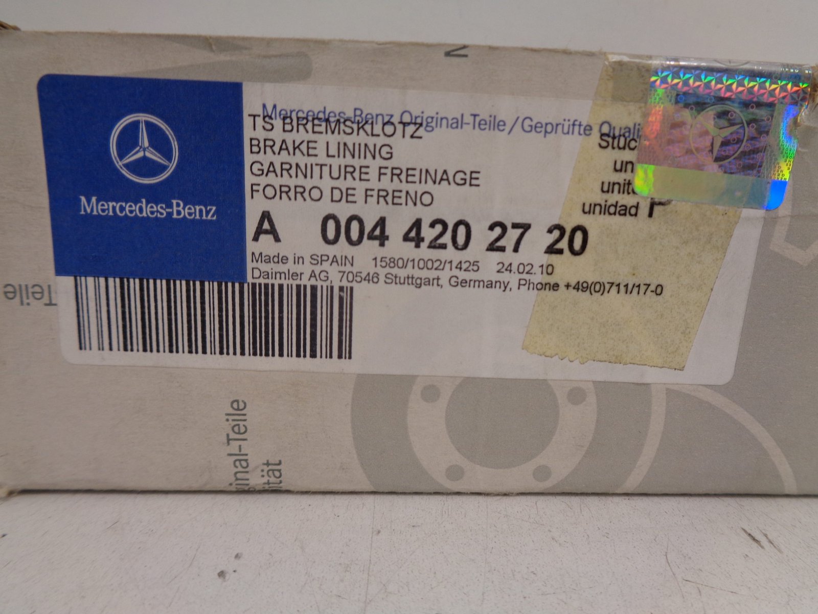 A0044202720 SPRINTER W902 REMBLOKSET VOOR NEW OLD STOCK ORIGINEEL MERCEDES-BENZ