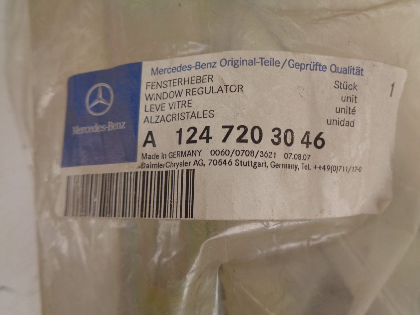 A1247203046 C124 RAAMMECHANISME RECHTS ELEKT NEW OLD STOCK ORIGINEEL MERCEDES-BENZ