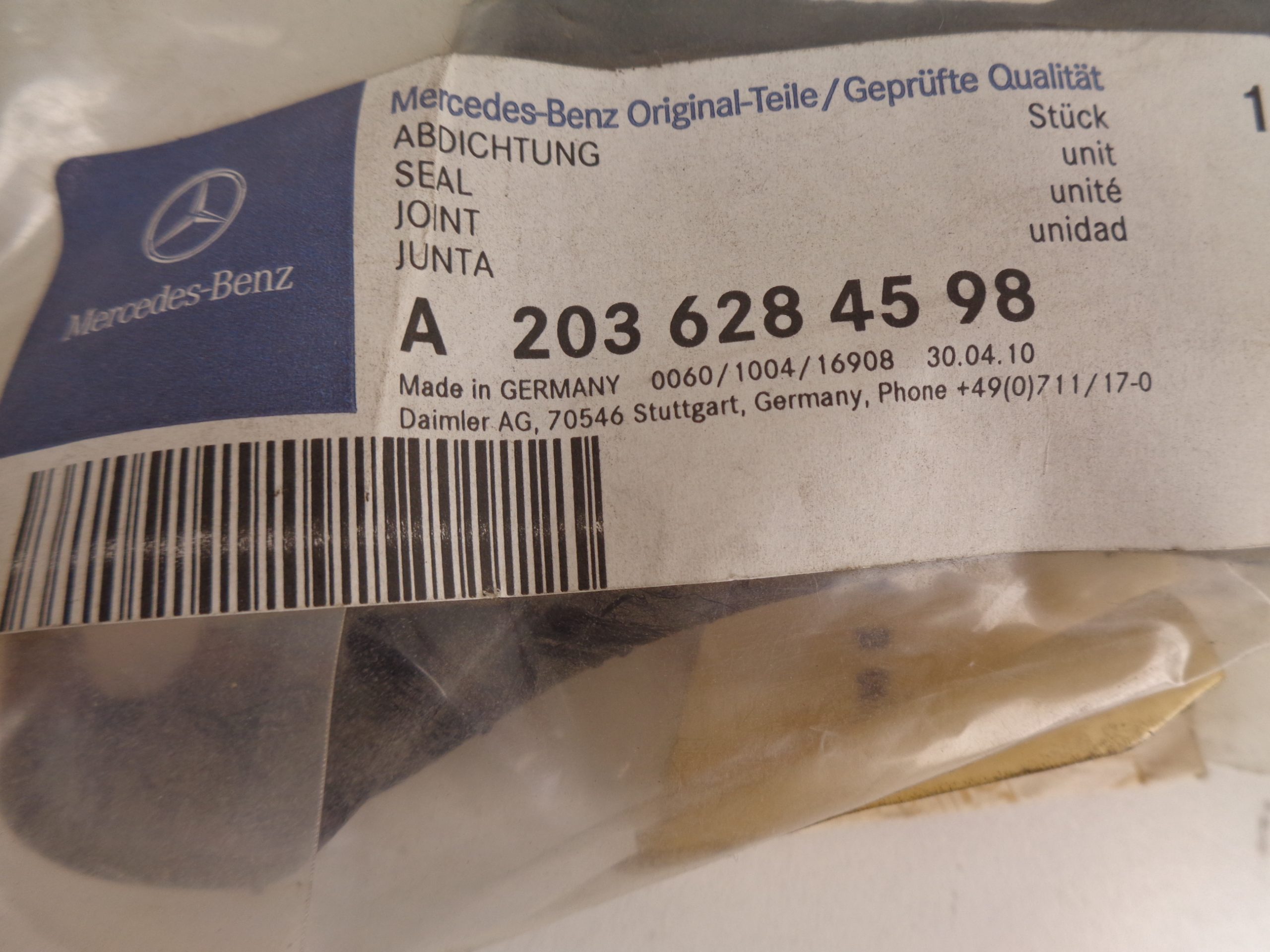 A2036284598 C-KLASSE W203 AFDICHTING NEW OLD STOCK ORIGINEEL MERCEDES-BENZ