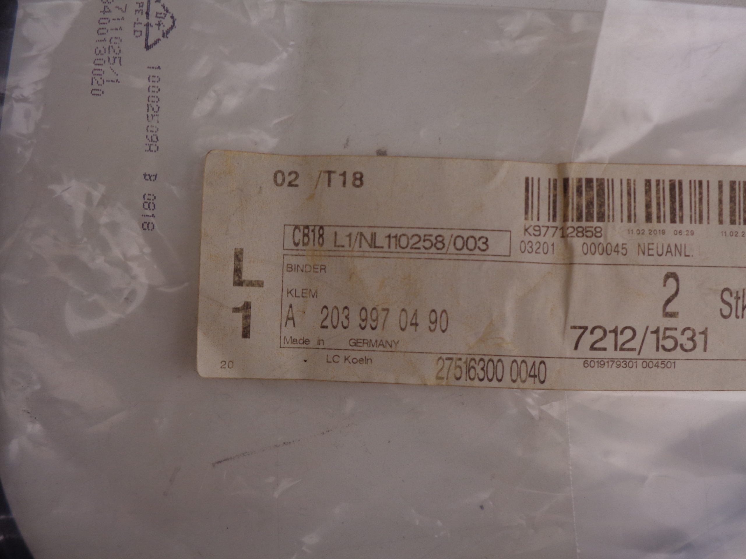 A2039970490 KLEMBAND NEW OLD STOCK ORIGINEEL MERCEDES-BENZ