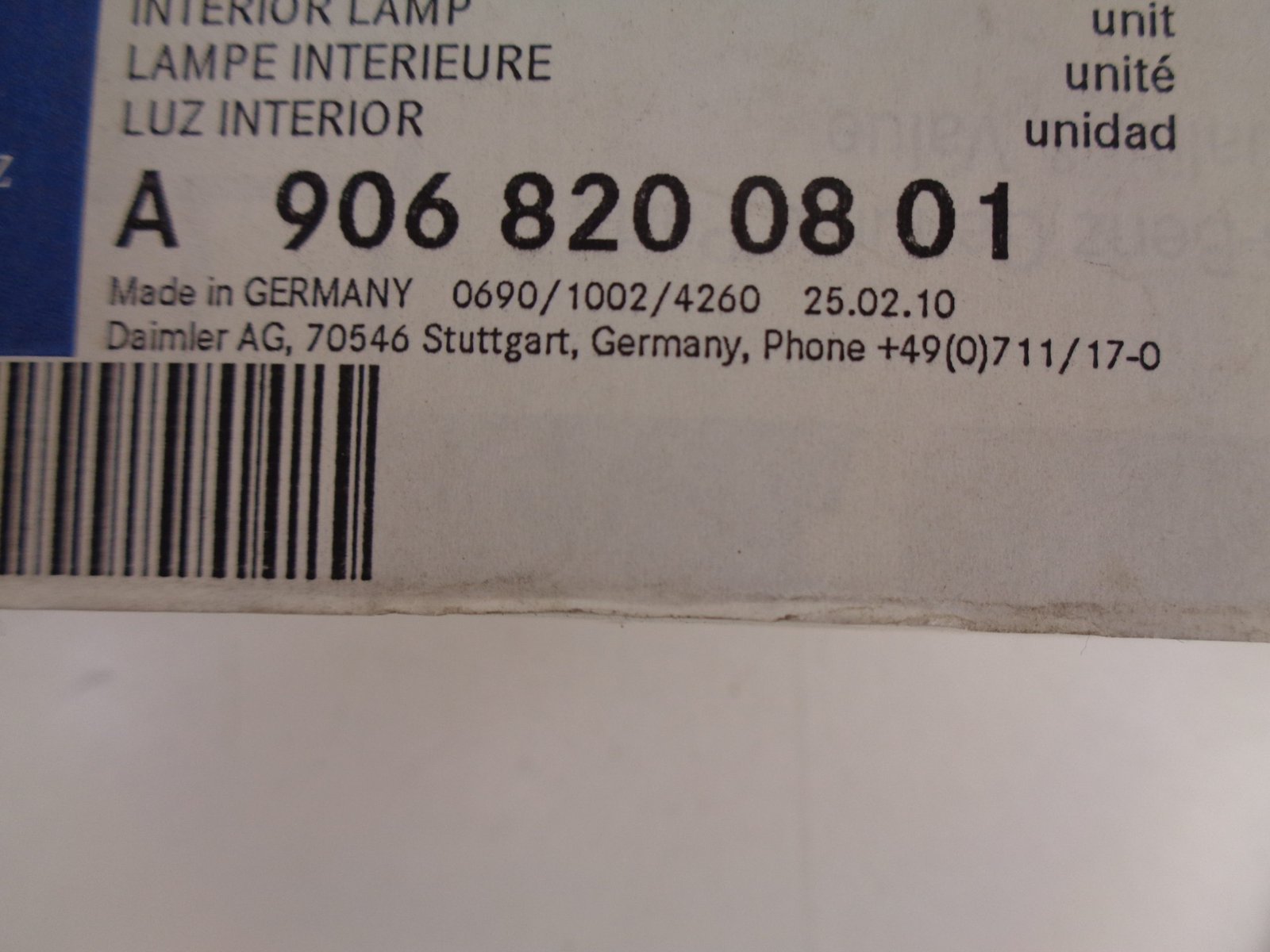 A9068200801 SPRINTER W906 BINNENLICHT ACHTER NEW OLD STOCK ORIGINEEL MERCEDES-BENZ